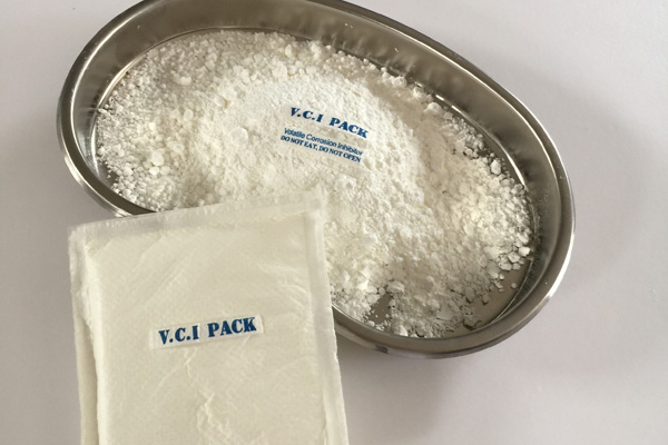 氣相防銹粉末多種特制的氣相緩蝕劑原料按一定配比均勻混合加工而成,具有水溶性,是一種新型的氣化性防銹材料。在密閉空間內(nèi),VCI經(jīng)氣化揮發(fā)到金屬的每個(gè)角落,吸附在金屬表面形成致密保護(hù)膜層從而起到防銹的作用